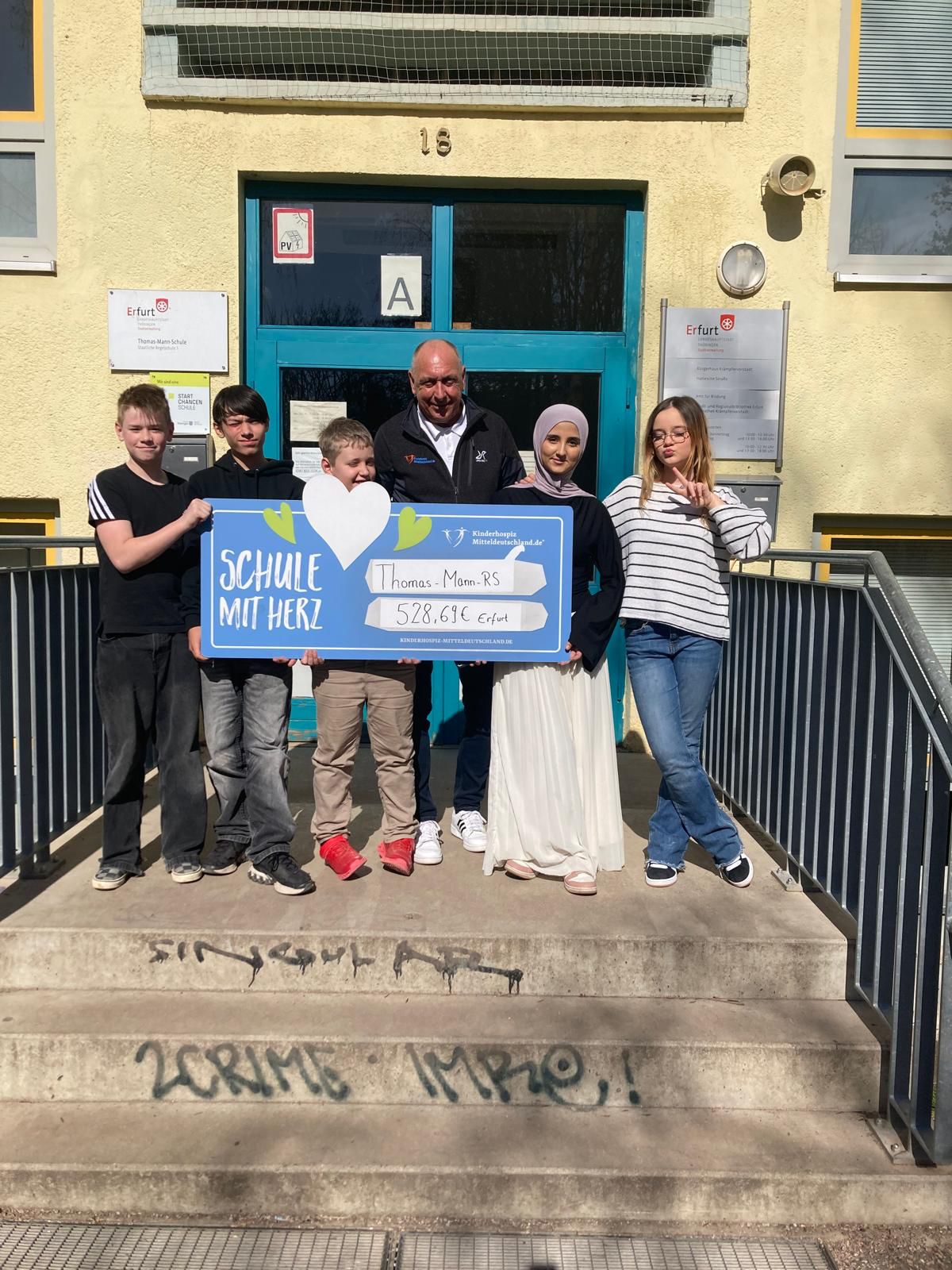 Auch in diesem Schuljahr kam wieder eine großzügige Summe für das Kinderhospiz Mittelthüringen in Tambach-Dietharz zusammen. Insgesamt sammelten alle Klassenstufen gemeinsam und erreichten eine Endsumme von 528,69 €.